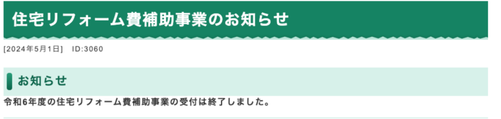 国の助成金も、市区町村の助成金も、年度ごとに予算が決められております。国の助成金は補正予算によって増額することがありますが、市区町村の助成金は年度予算に達したら、その年度の助成金は終了してしまいます。